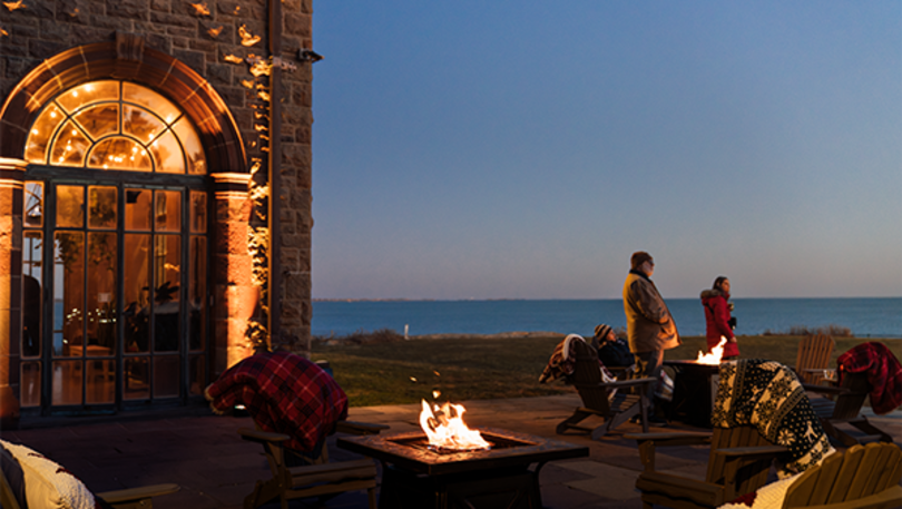 Stop by the cocoa bar on your way to the terrace and linger by the fire with a cozy blanket as the waves crash below, or let the music lead you through the twinkling halls.