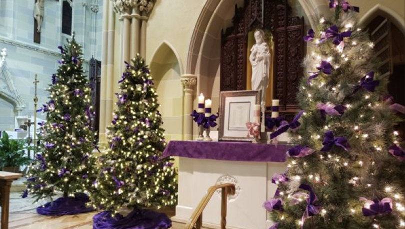 Visitors are invited to enjoy the sacred space decorated for the Advent Season, light a candle, and admire the Gothic Revival architecture and beautiful stained glass windows. Freewill offering envelopes will be available should visitors wish to make a gift to benefit the St. Mary's Hot Lunch Program, serving our neighbors in need, on the second, third, and fourth Wednesday of the month.