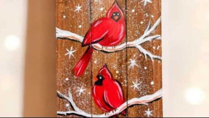 Cardinal Calling Wooden Plank Sign - Painting Class