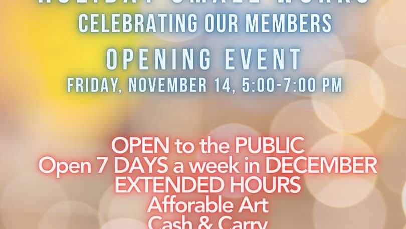 An Opening Reception will be held on Thursday, November 14 from 5:00–7:00 p.m. Visitors are invited to meet the artists, enjoy light refreshments, and be among the first to explore this year’s collection of small works.