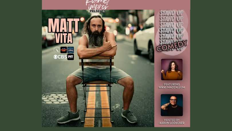 Catch acclaimed comedian Matt Vita! A celebrated 11-year veteran of the NYC Improv community, Vita delivers sharp, zany observational standup and freestyle rap! Featuring openers Aaron Leidecker and Nikki Maccalum.