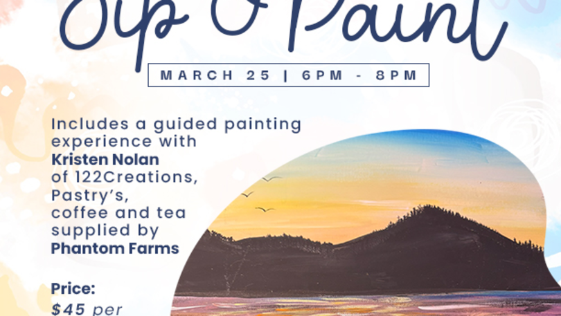 Experience a guided painting experience with Kristen Nolan of 122 Creations. Enjoy coffee, tea and pastries supplied by Phantom Farms. You can BYOB.  Â