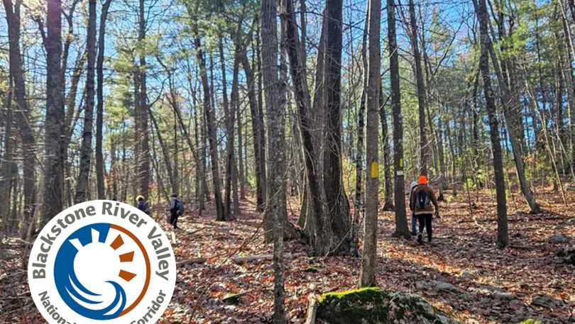 This hike, for the Blackstone Heritage Corridor, is a 4-mile hike that climbs up and over Wolf Hill to Mercer Outlook and offers views of the Providence skyline. The walk also visits the Airmen Memorial, where, during World War II, a military plane crashed.