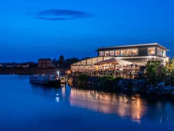 In Narragansett, enjoy views of the bay and local seafood from the Coast Guard House next to the historic Narragansett Towers. Or load up on lobster at the family-owned Nordic Lodge buffet. For evening entertainment, check out The Courthouse Center for the Arts in West Kingston.
