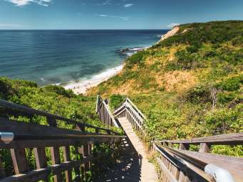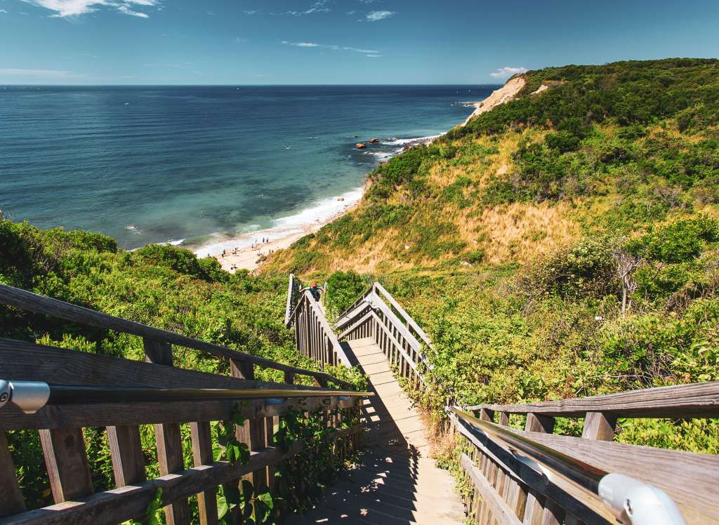 Wander 28 miles of greenway trails and explore Rodman’s Hollow, a 230-acre glacial outwash plain with panoramic views of the Atlantic Ocean.